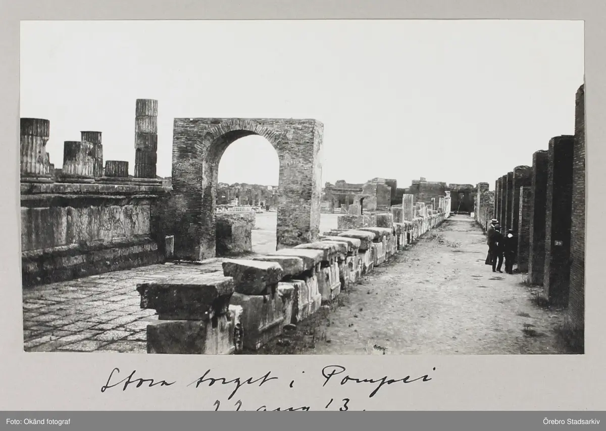 Ruiner kring stora torget i italienska Pompeji, 1913-08-22