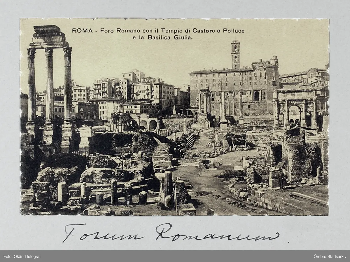 Vykort överblickande Forum Romanum med sina ruiner och Iulias basilika, 1913