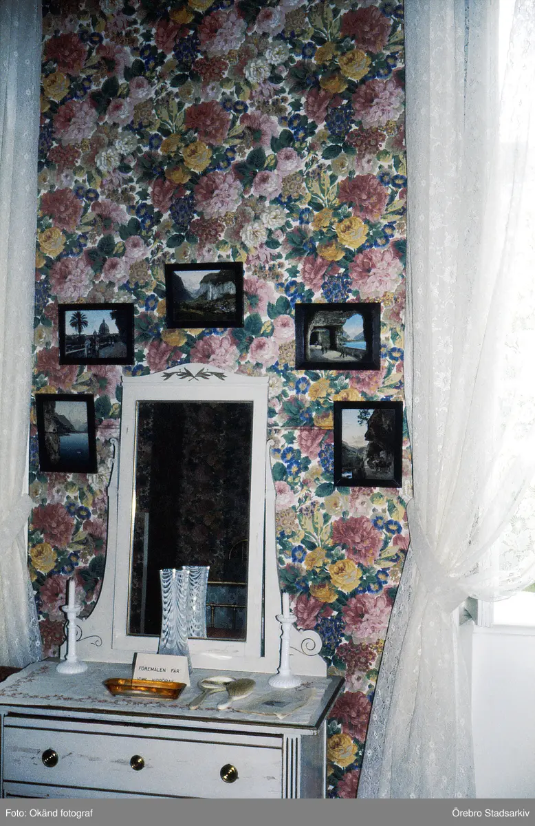 Spegelbyrå mot mönstrad tapet i Karlslunds herrgård, 1980-tal