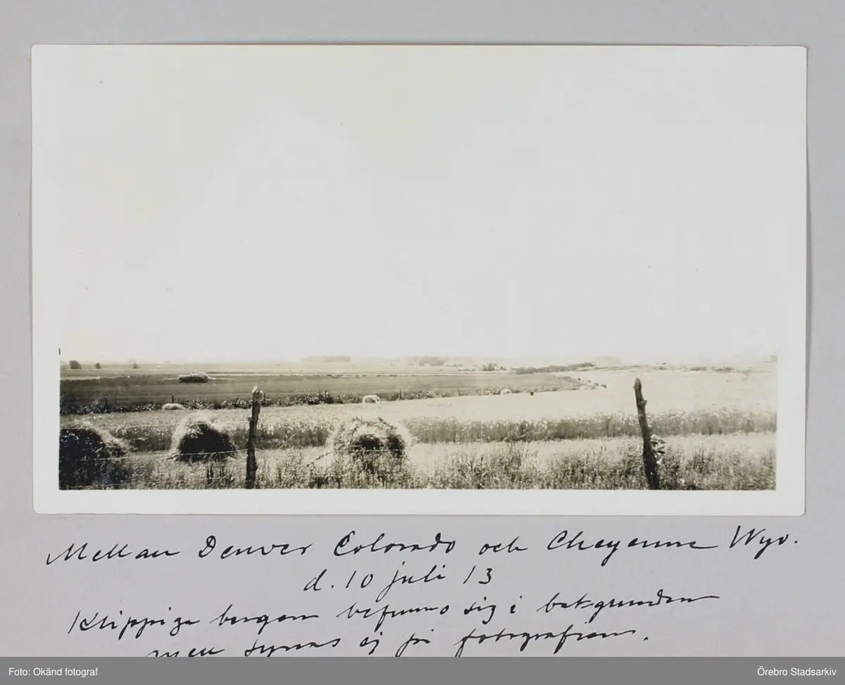Mellan Denver Colorado och Cheyenne Wyoming. Klippiga bergen i bakgrunden men syns ej på fotografiet 1913-07-10