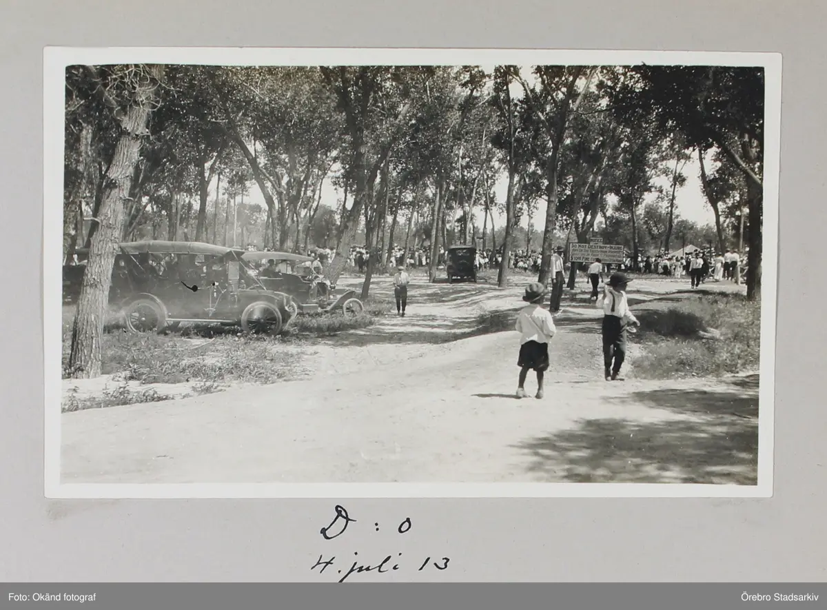 Bilar parkerade när familjer firar nationaldagen i McCook i Nebraska, 1913-07-04