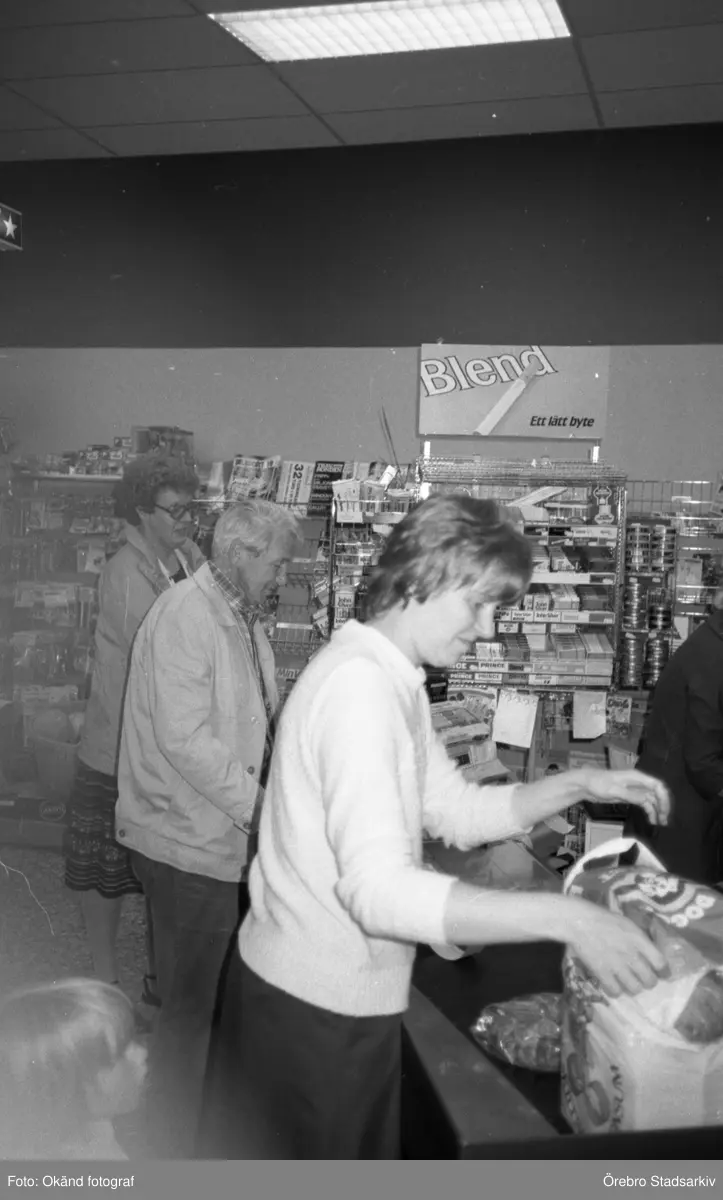Kunder vid kassan på Konsum på Härdvägen i Garphyttan, 1985
