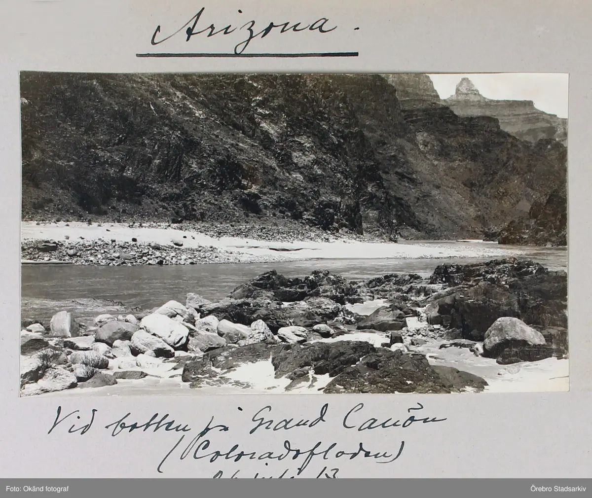 Vid botten på Grand Canyon där Coloradofloden sinkar sig fram i Arizona, 1913-07-26