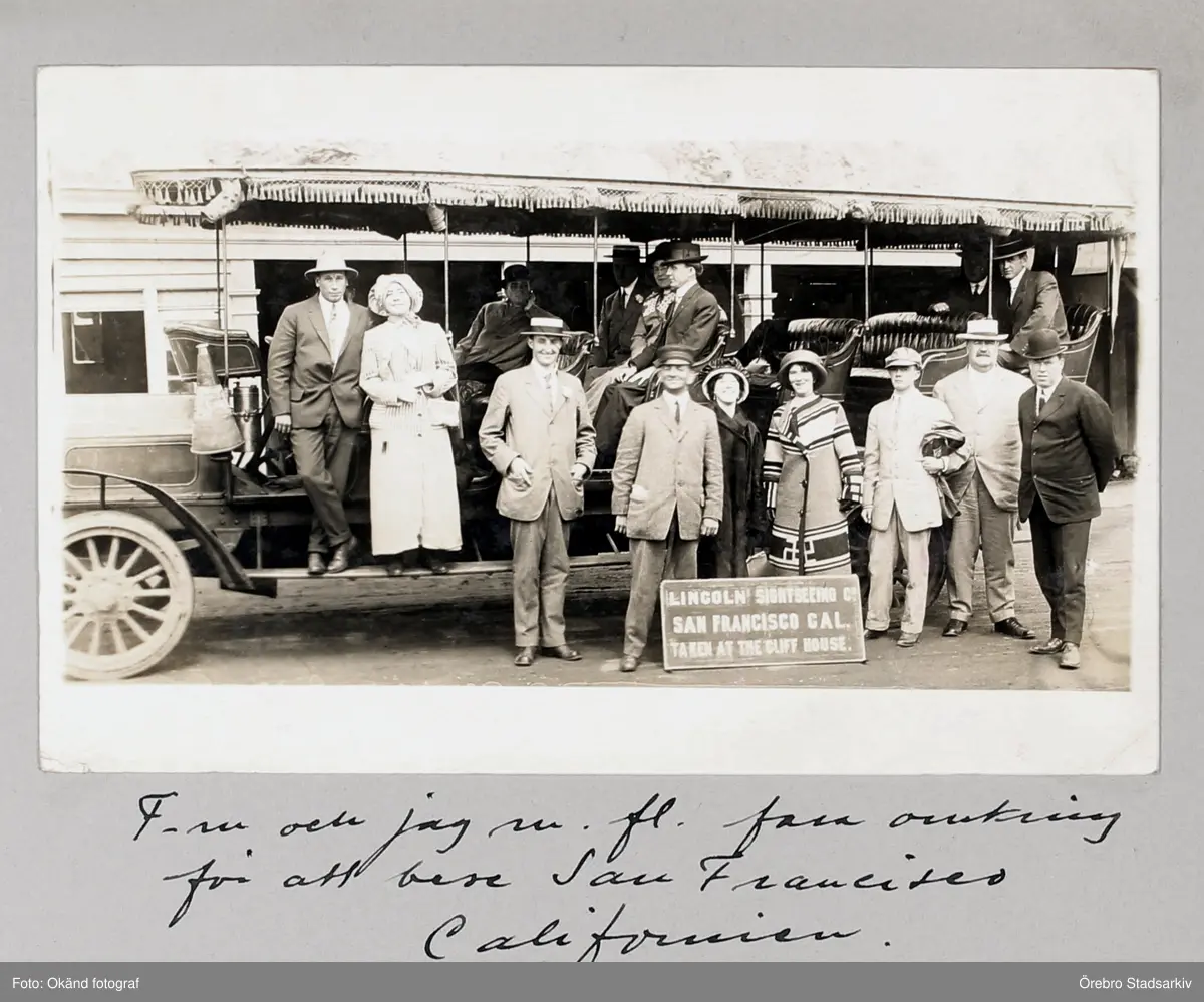 Dieden, Fernström och resesällskap på foto i San Francisco I Kalifornien, 1913