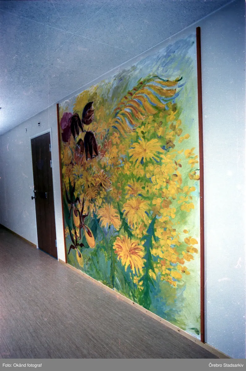 Väggmålning av gula blommor på äldreboendet Sofiagården, 1980-tal