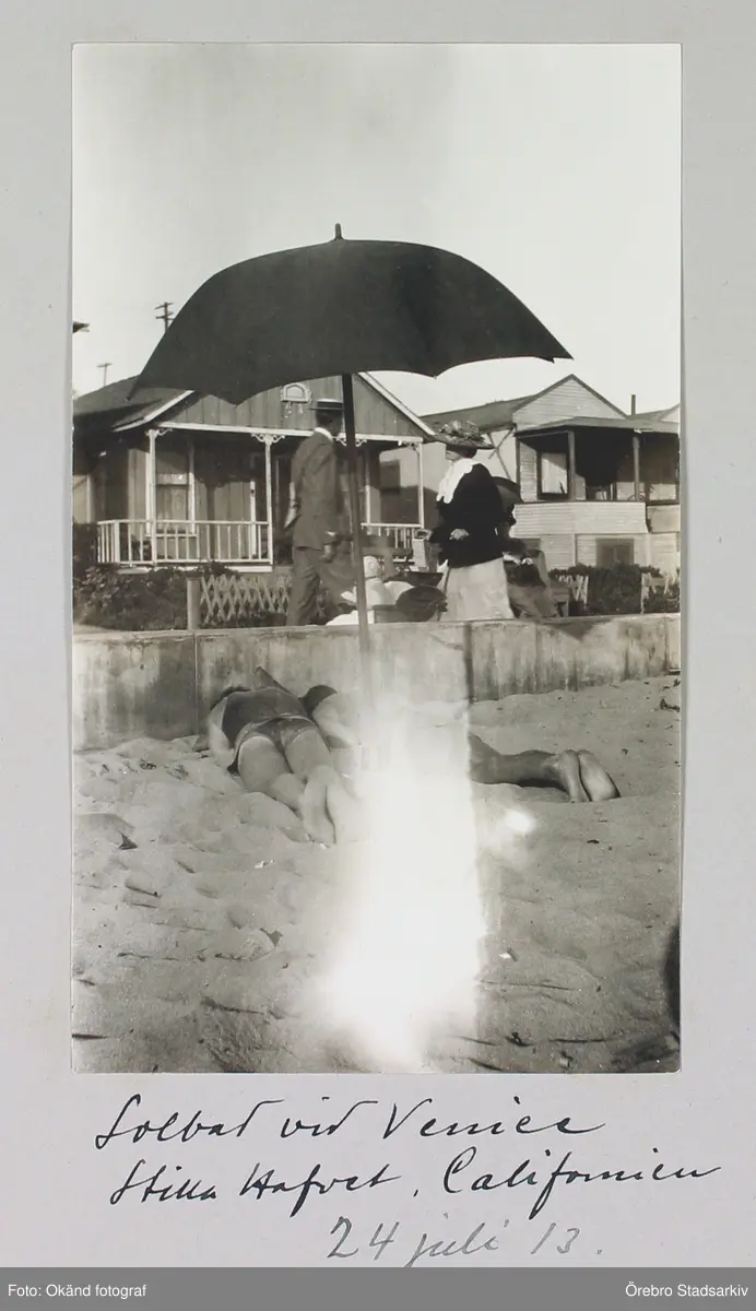 Solbadare på stranden Venice beach i Los Angeles, 1913-07-24