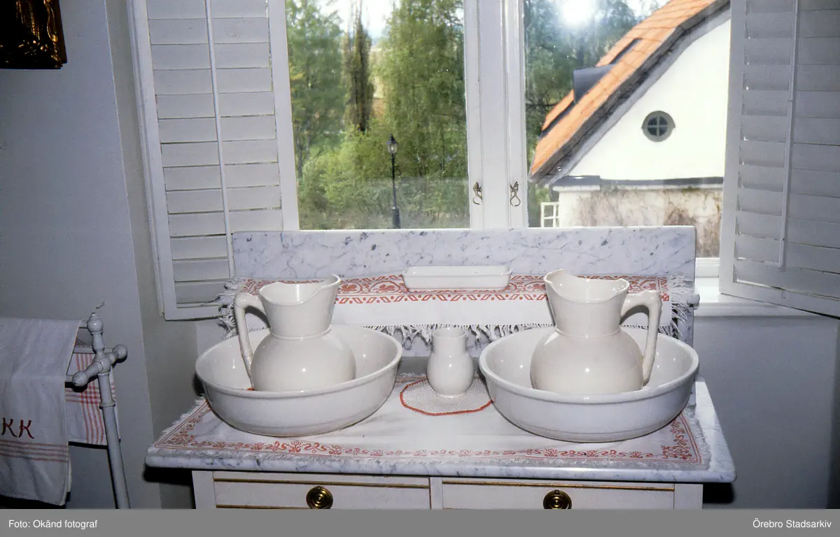 Kanna och tvättfat i badrum i Karlslunds herrgård, 1980-tal
