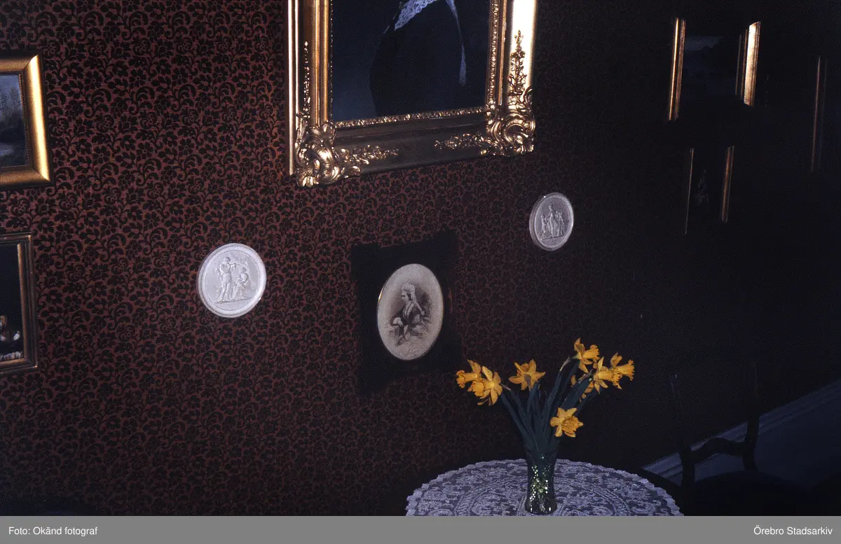 Vas med påskliljor vid tavelvägg i Karlslunds herrgård, 1980-tal