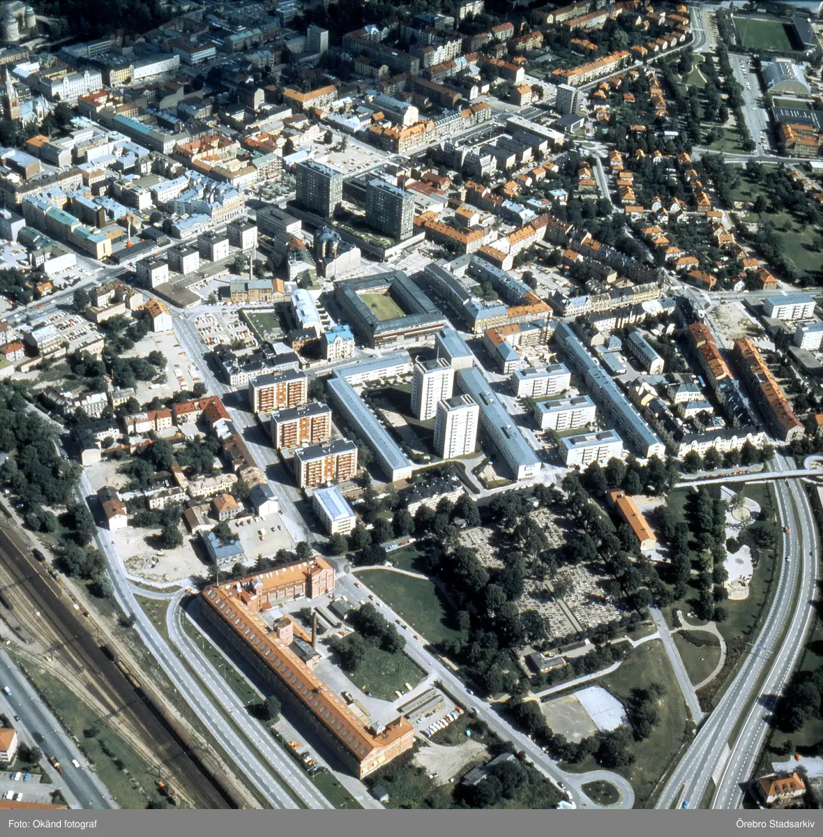 Flygfoto från södra infarten mot norr, 1970-tal
