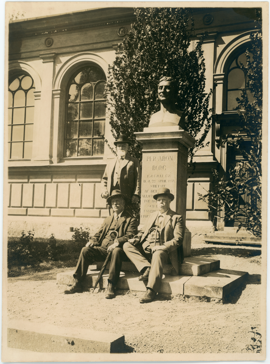 Stockholm, Manillaskolan. Gruppbild vid Per Aron Borgs byst