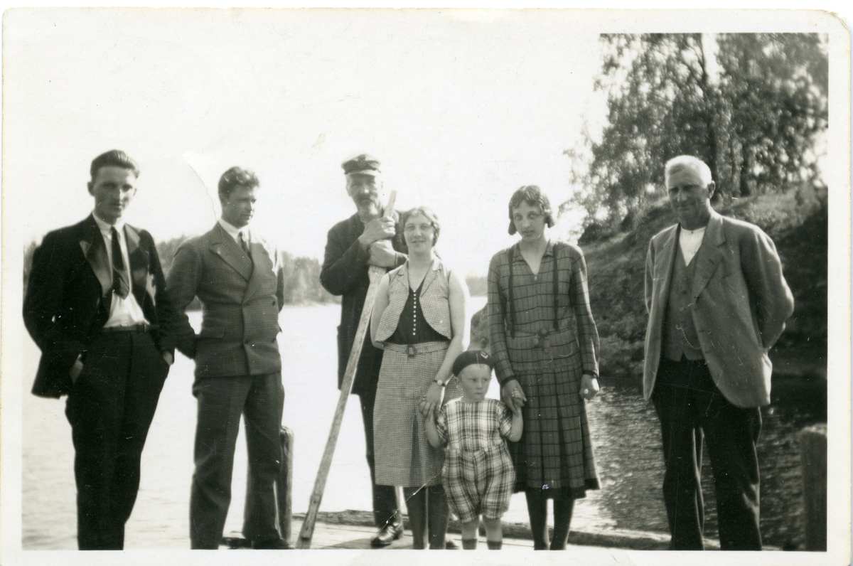 Gruppbild i Grunnerud, Harald Sundling längst till vänster, Enok Sundling längst till höger.