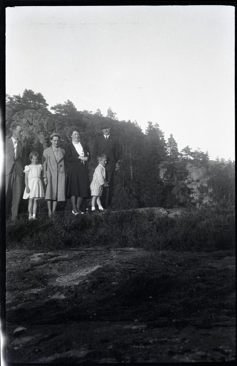 Gruppbild i naturen. På bilden från vänster: Harald, Marianne, Märta, Ingrid, Lennart, Georg (alla Sundling).