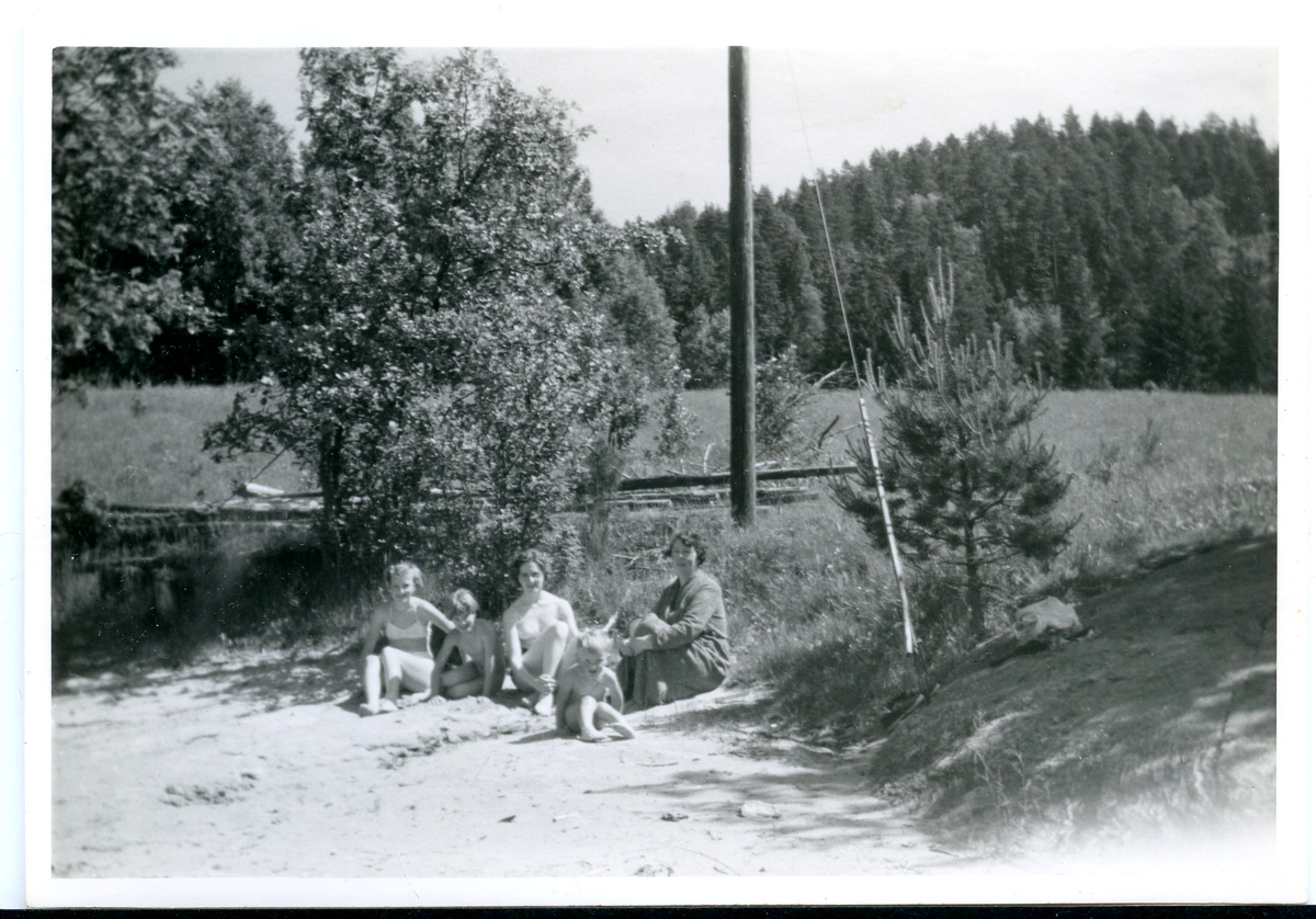 Ingrid Sundling på med barn och brorsbarn på strand.