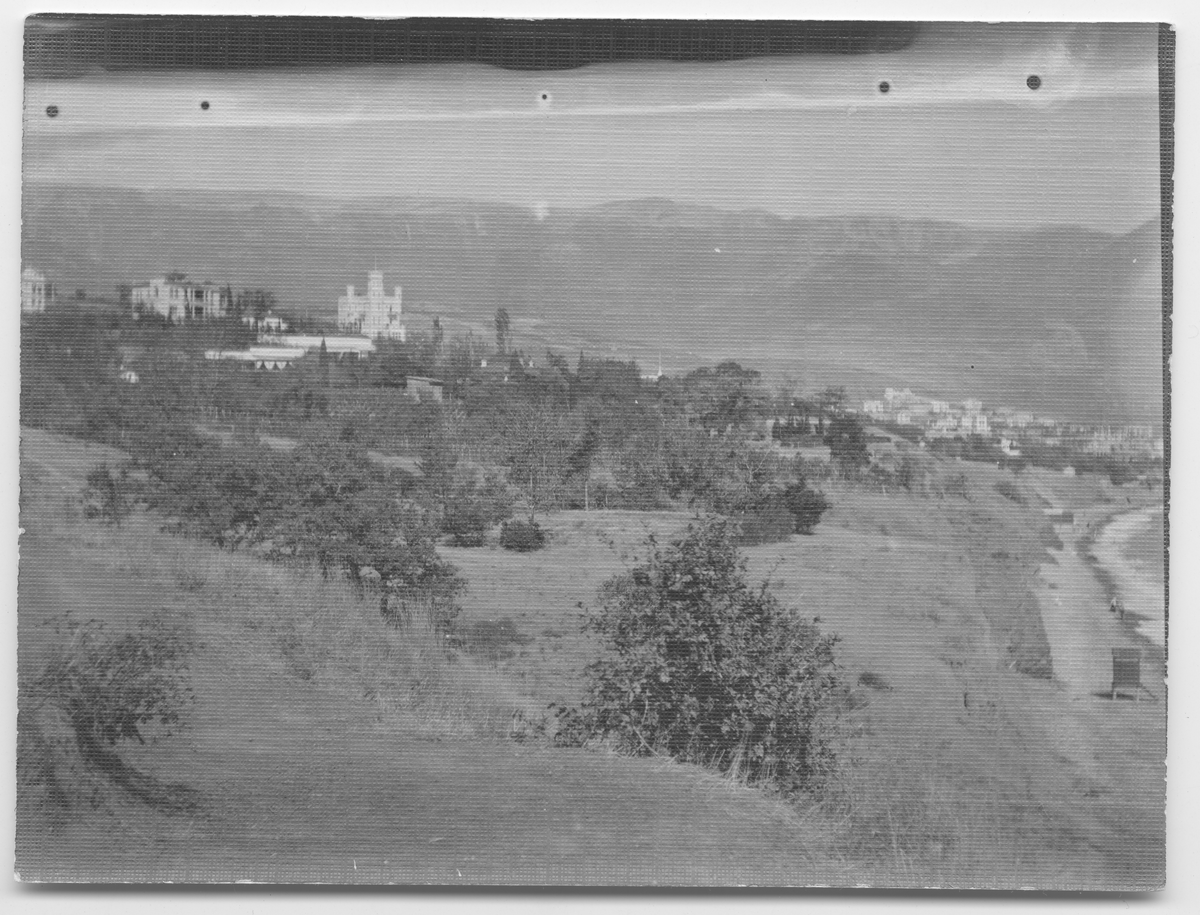 På kuvertet står följande information sammanställd vid museets första genomgång av materialet: Vy av Yalta från stranden.