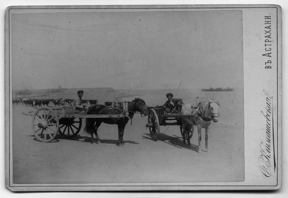 På kuvertet står följande information sammanställd vid museets första genomgång av materialet: Astrakhan. Kirgiser på sin arba.