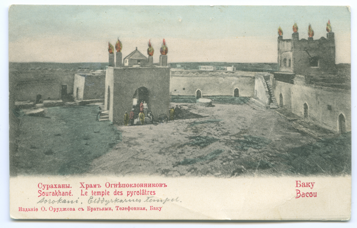 På kuvertet står följande information sammanställd vid museets första genomgång av materialet: Baku. Sorokani Elddyrkarnas Tempel.