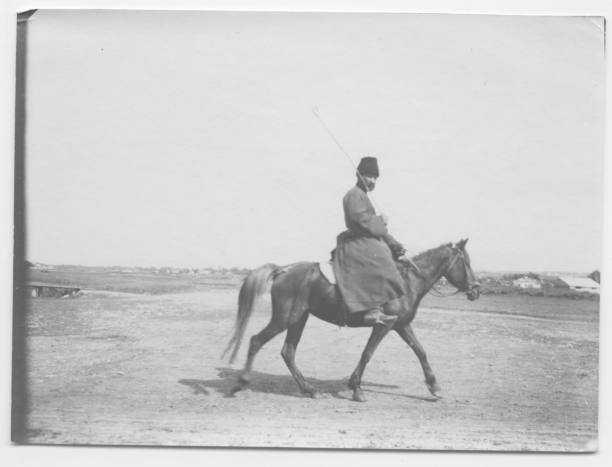 På kuvertet står följande information sammanställd vid museets första genomgång av materialet: Kaukasien. Kaukasier till häst.