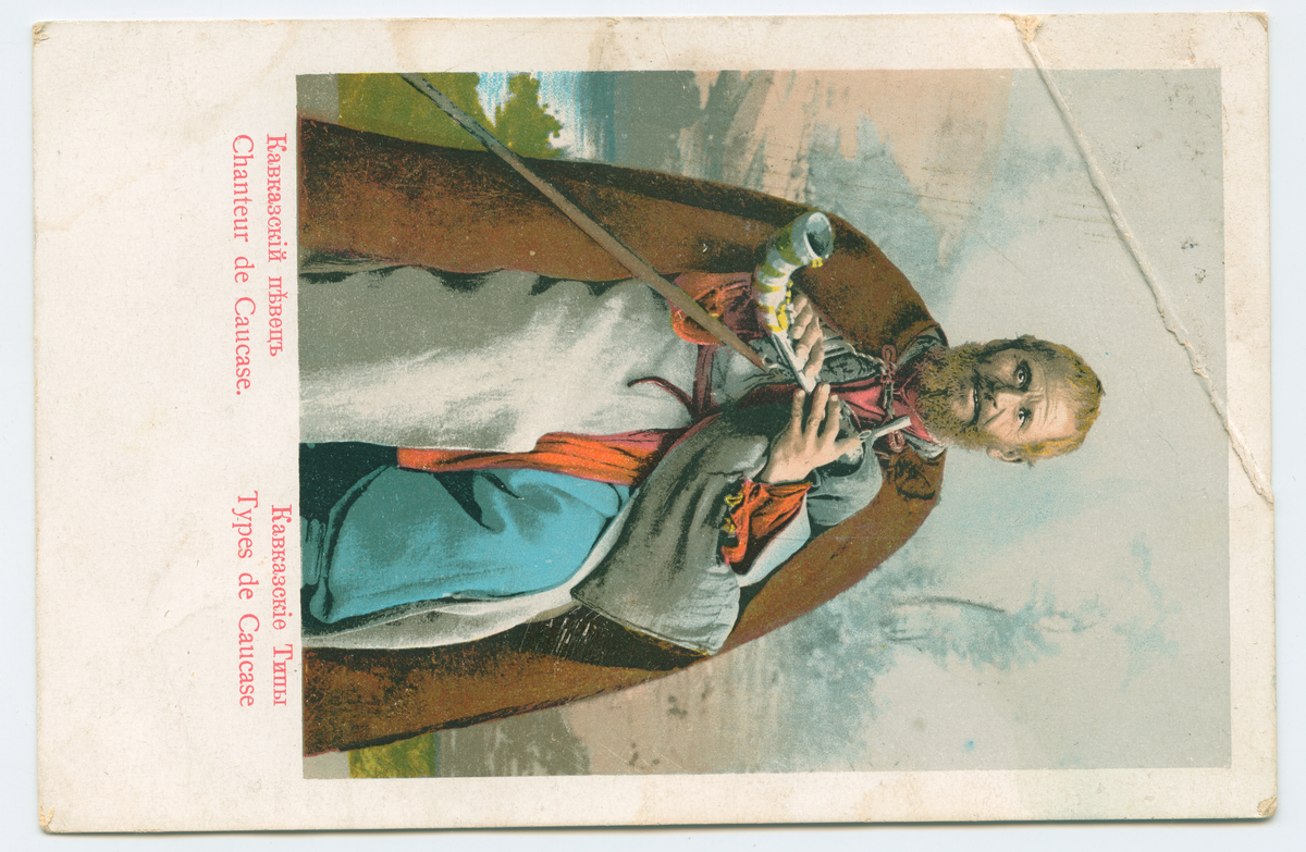 På kuvertet står följande information sammanställd vid museets första genomgång av materialet: Kaukasik sångare och musiker.
