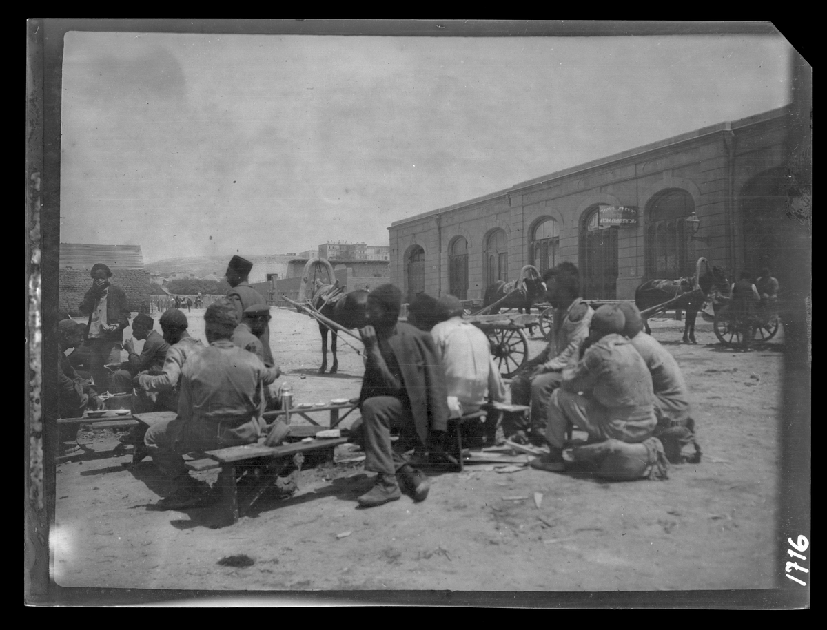 På kuvertet står följande information sammanställd vid museets första genomgång av materialet: gr. bild Lunchtid i