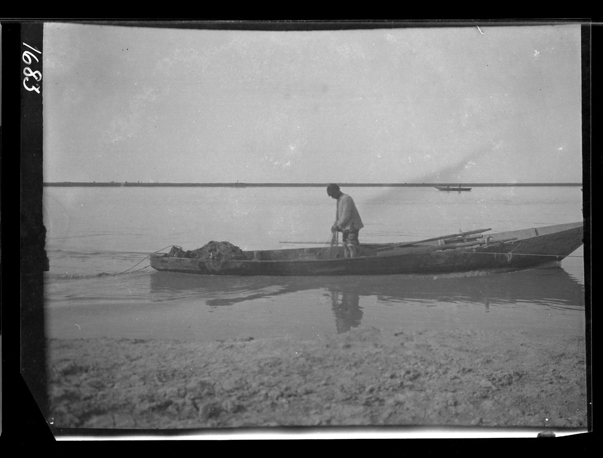 På kuvertet står följande information sammanställd vid museets första genomgång av materialet: Fiskaren i sin båt