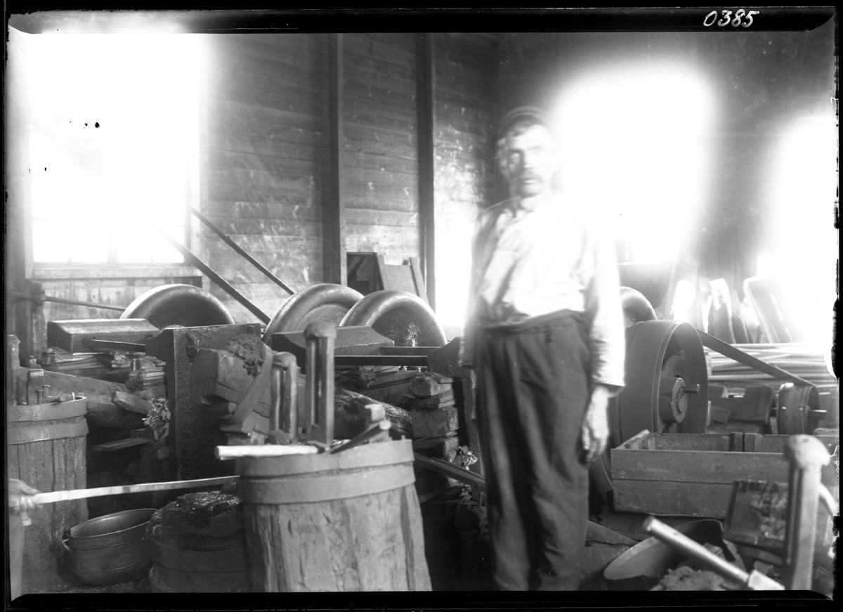 På kuvertet står följande information sammanställd vid museets första genomgång av materialet: Spiksmed.