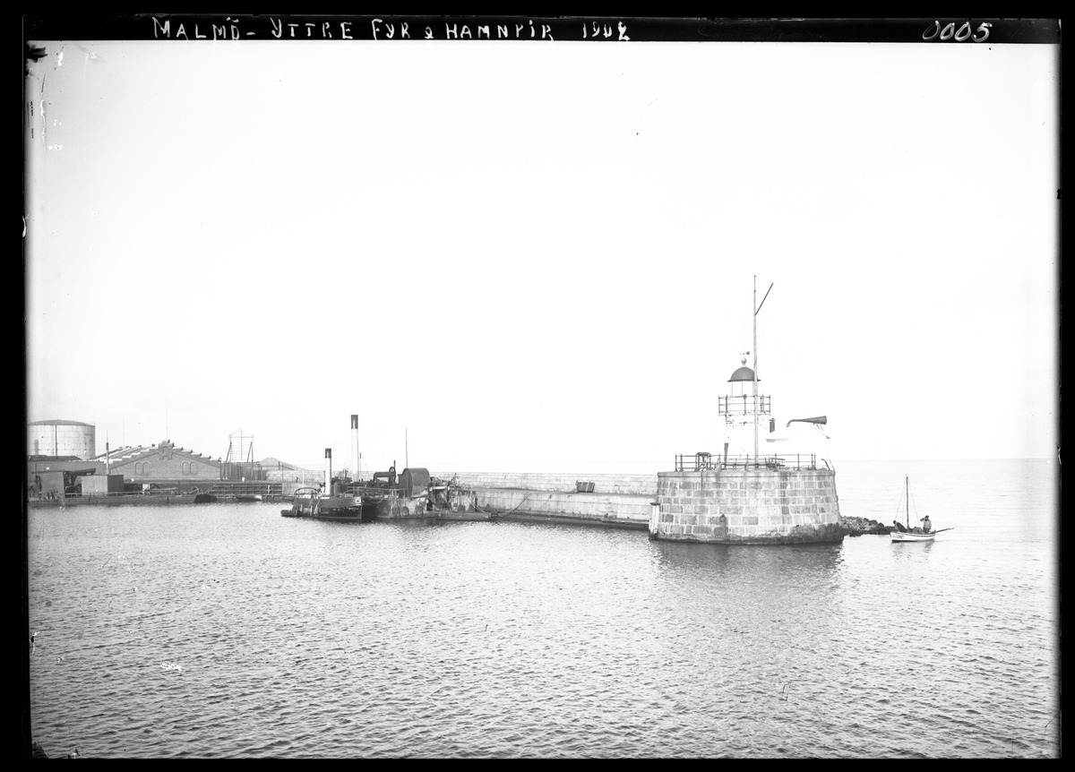 På kuvertet står följande information sammanställd vid museets första genomgång av materialet: Malmö yttre fyr & hamnpir