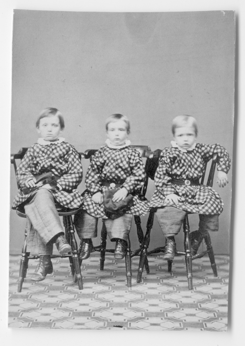 På kuvertet står följande information sammanställd vid museets första genomgång av materialet: Barnporträtt Wilhelm, Carl o Alfred Dahlgren.