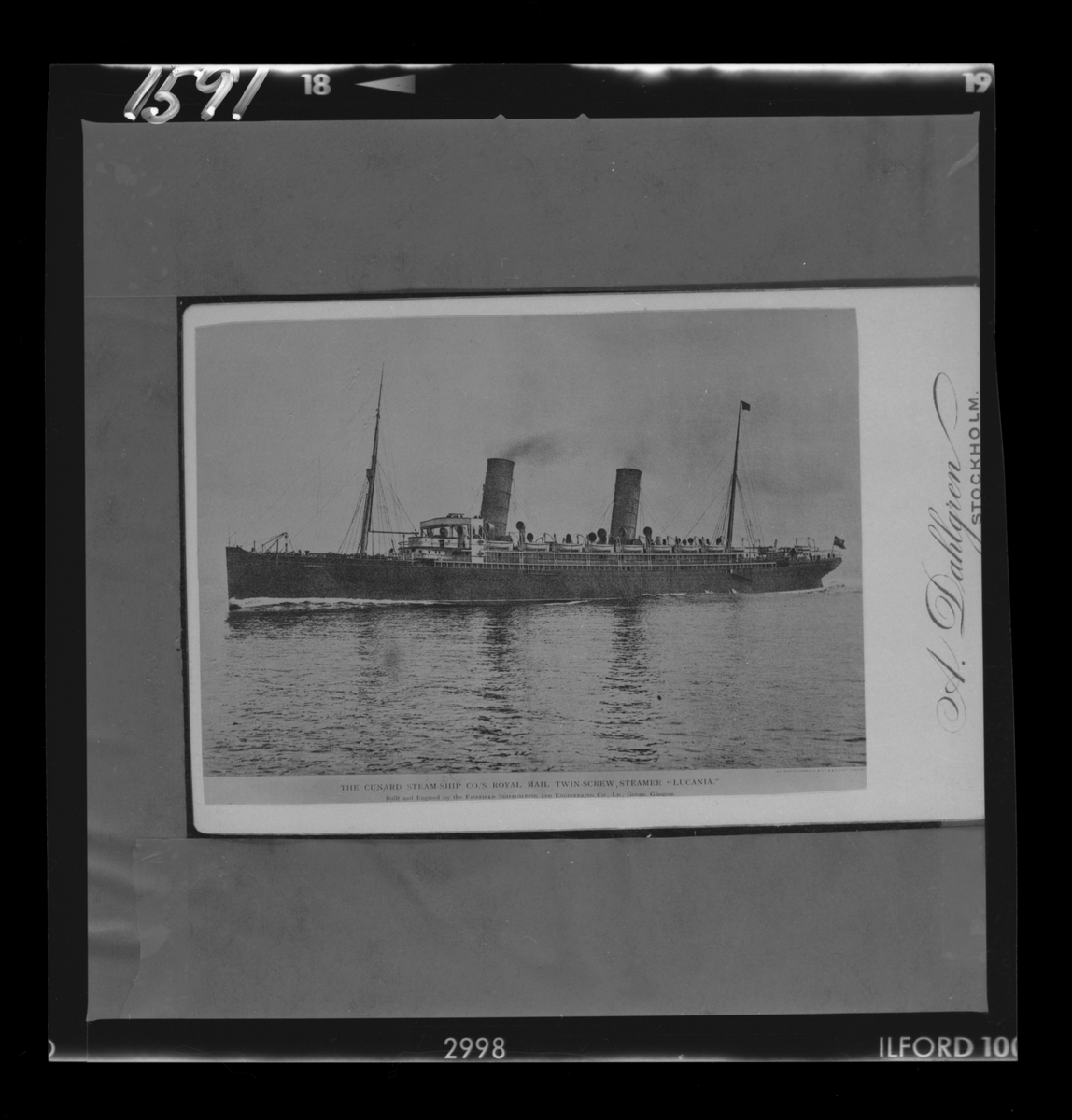 På kuvertet står följande information sammanställd vid museets första genomgång av materialet: Fartyg Lucania.