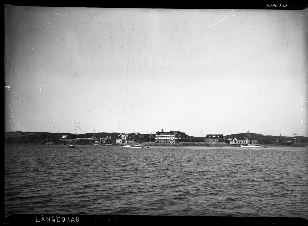 På kuvertet står följande information sammanställd vid museets första genomgång av materialet: Vy över Långedrag.