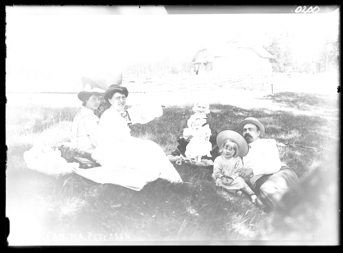 På kuvertet står följande information sammanställd vid museets första genomgång av materialet: Familjen H.A Peterson.