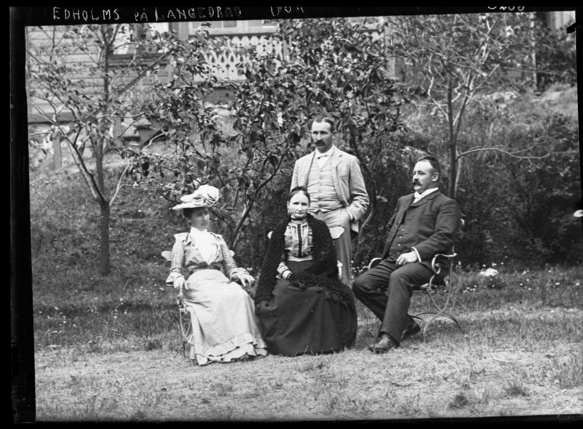 På kuvertet står följande information sammanställd vid museets första genomgång av materialet: Långedrag. Edholm. gr.bild taget i trädgård.