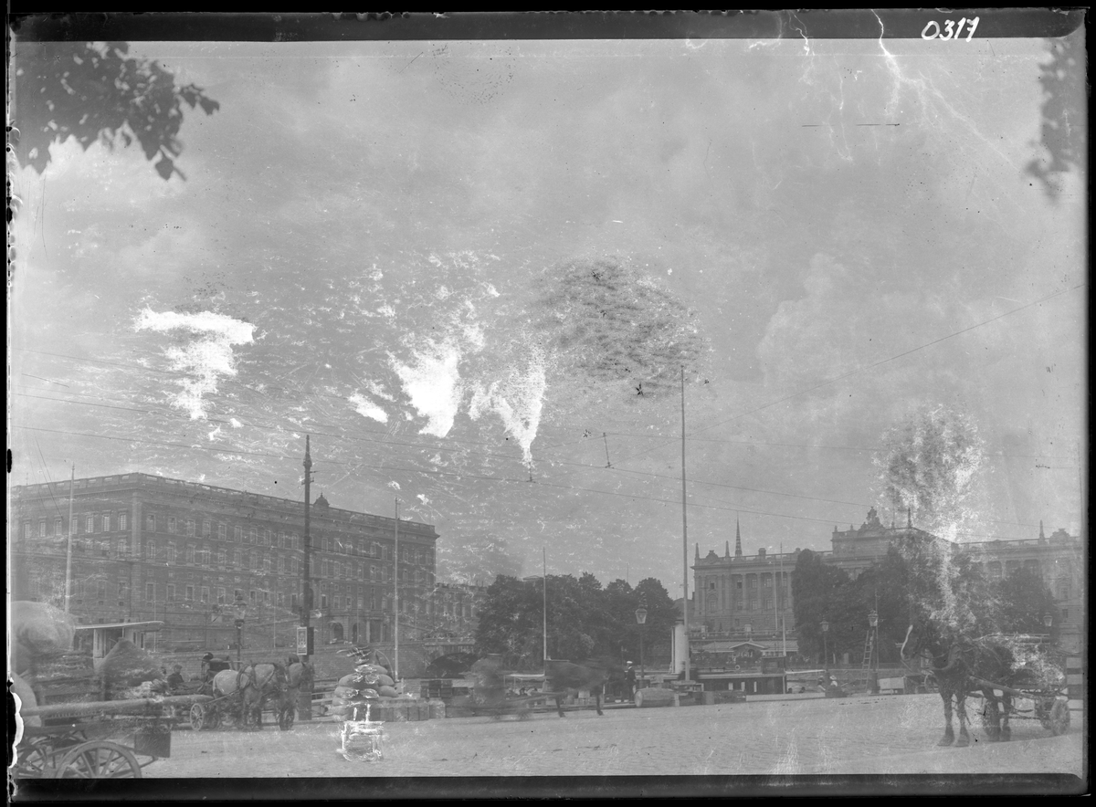 På kuvertet står följande information sammanställd vid museets första genomgång av materialet: Kungliga slottet och Riksdagshuset.