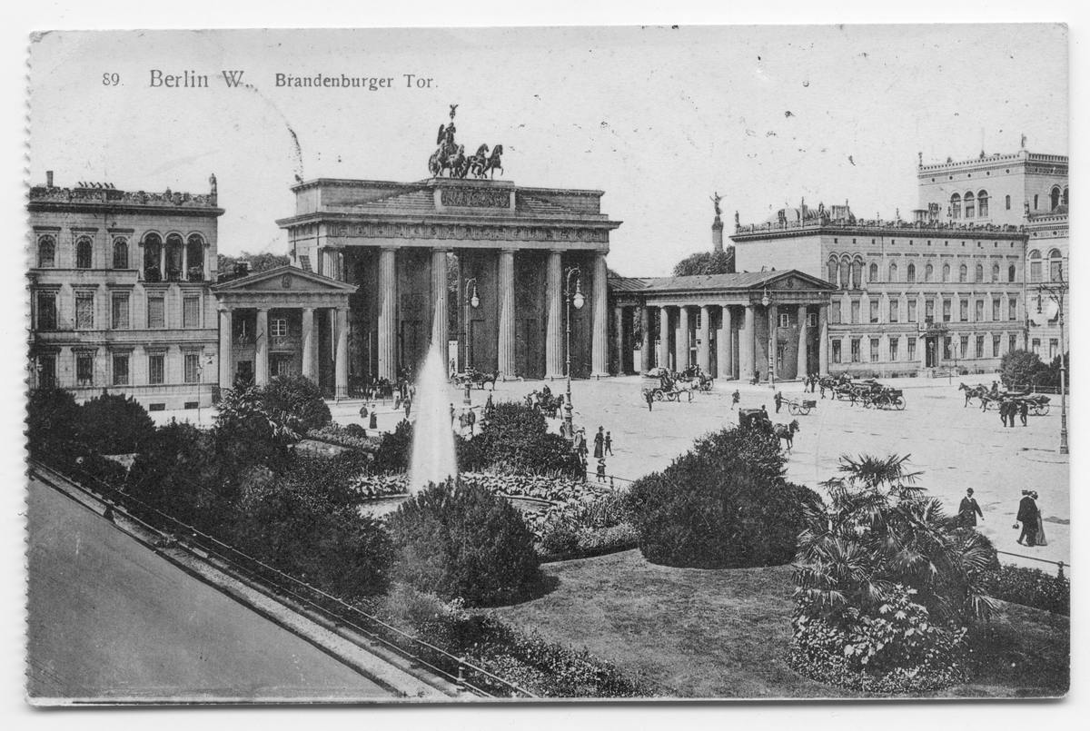På kuvertet står följande information sammanställd vid museets första genomgång av materialet: Brandenburger Tor.