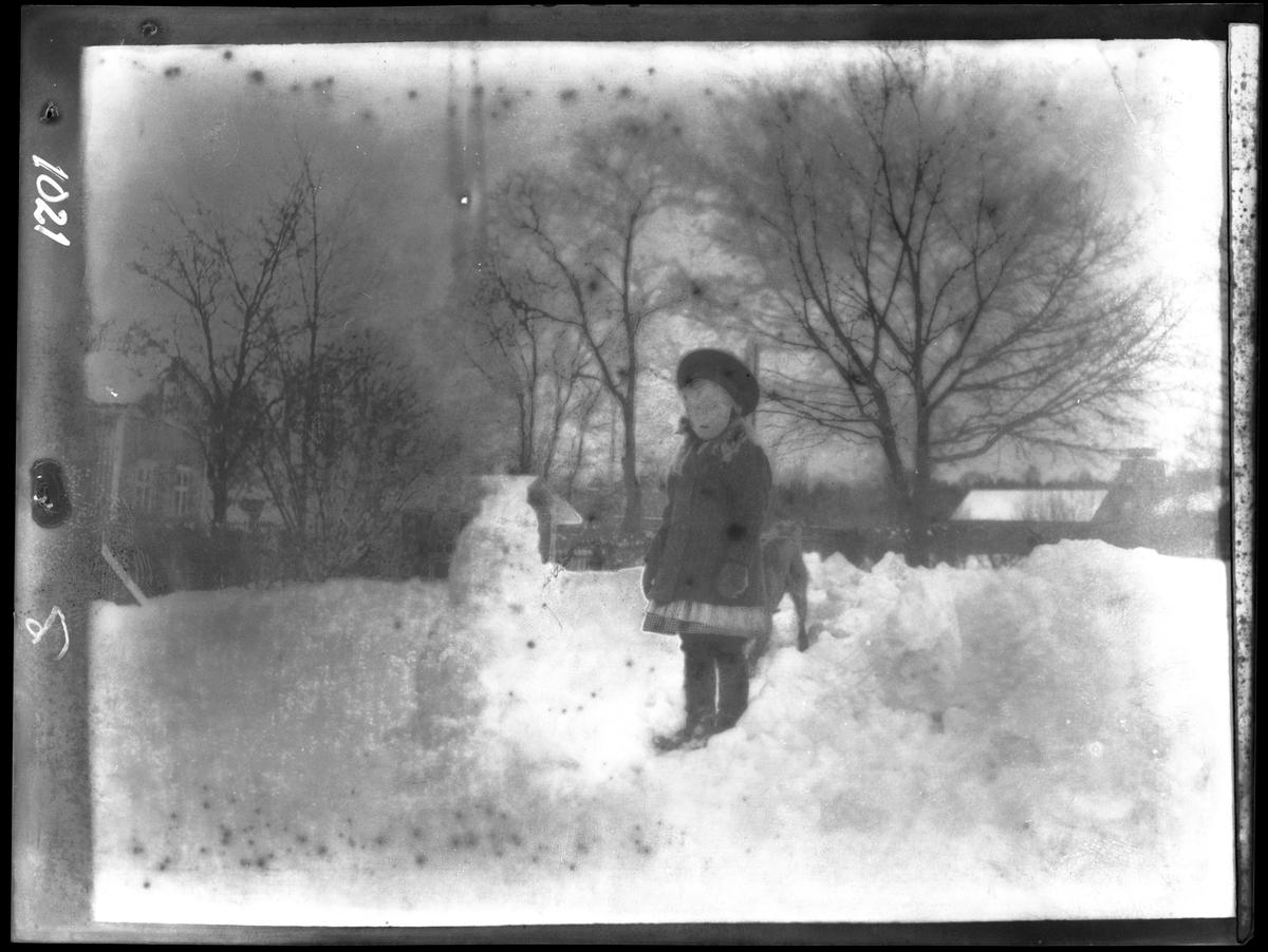 På kuvertet står följande information sammanställd vid museets första genomgång av materialet: Flicka uti snö.