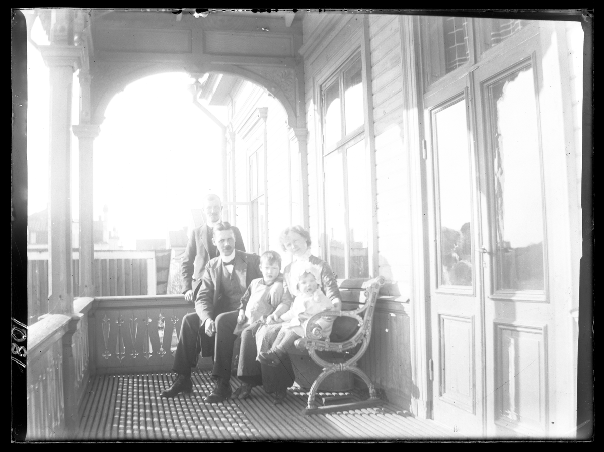 På kuvertet står följande information sammanställd vid museets första genomgång av materialet: Familjebild tagit på verandan.