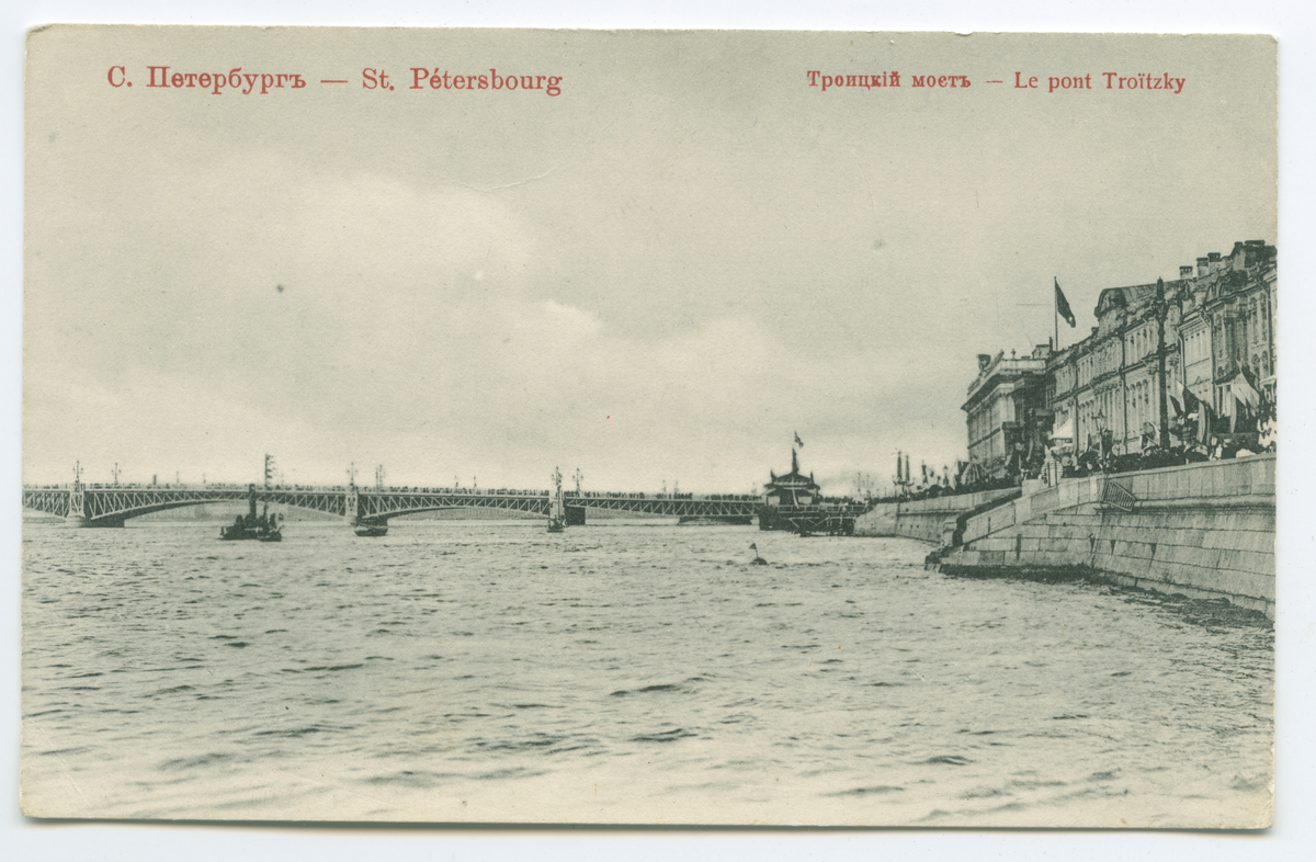 På kuvertet står följande information sammanställd vid museets första genomgång av materialet: St. Petersburg. Le Pont Troitsky.