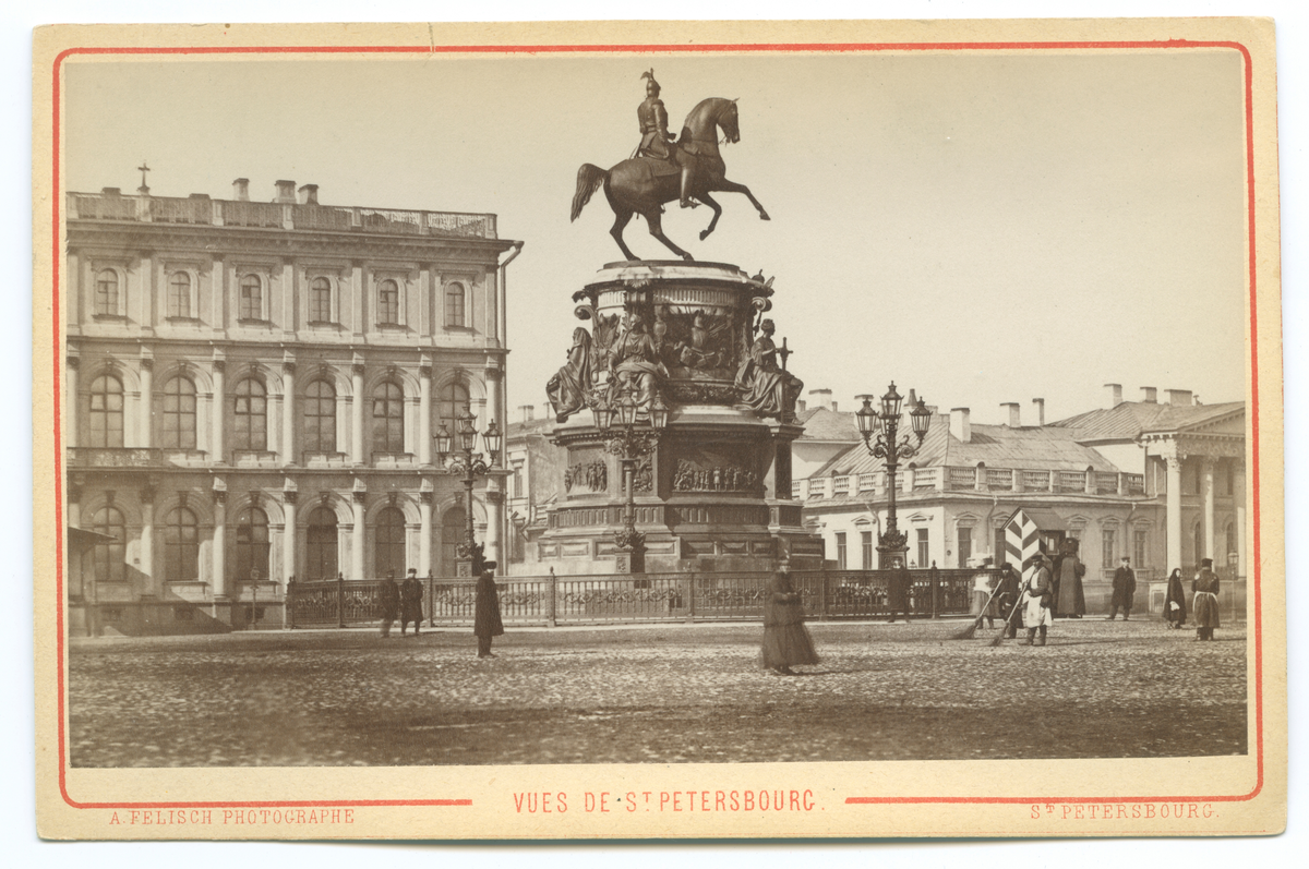 På kuvertet står följande information sammanställd vid museets första genomgång av materialet: St Petersburg Kejsar Nicolas I staty