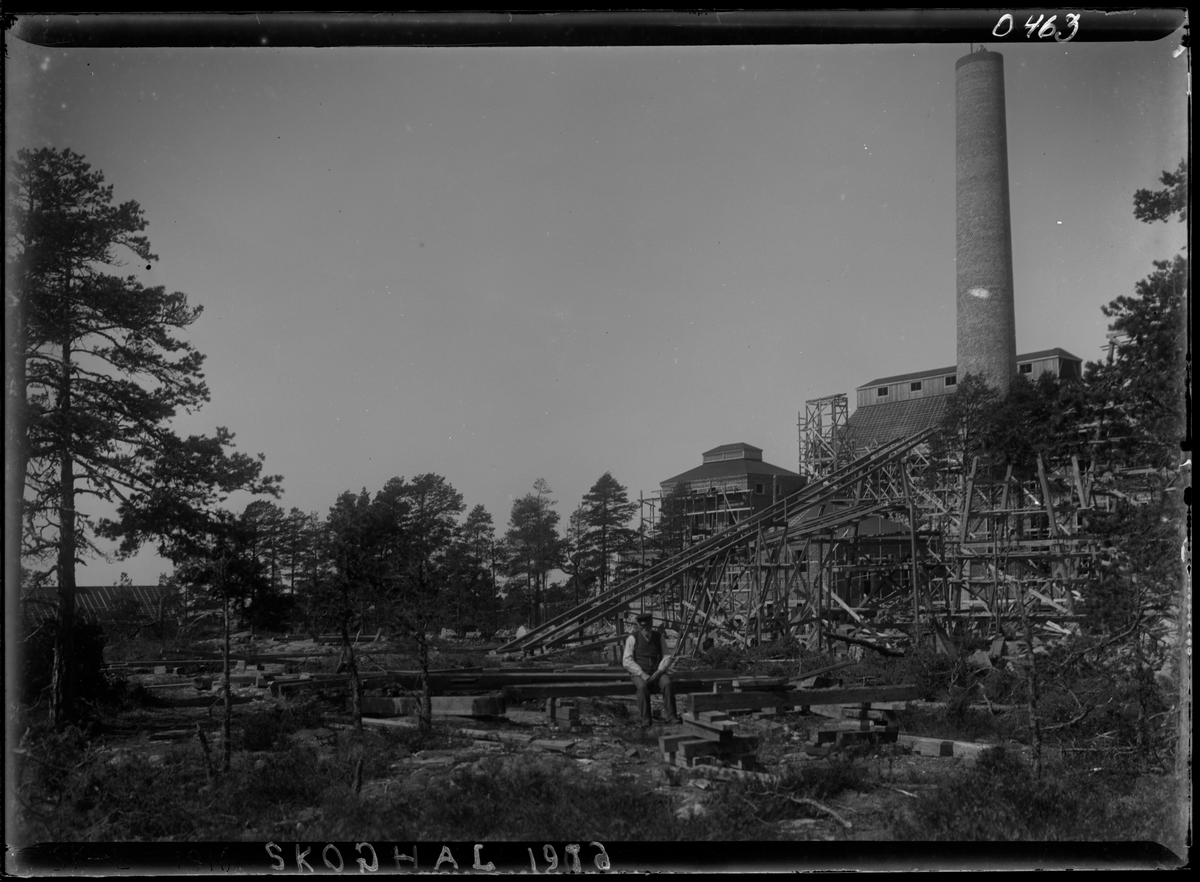 På kuvertet står följande information sammanställd vid museets första genomgång av materialet: En fabrik under byggnad.