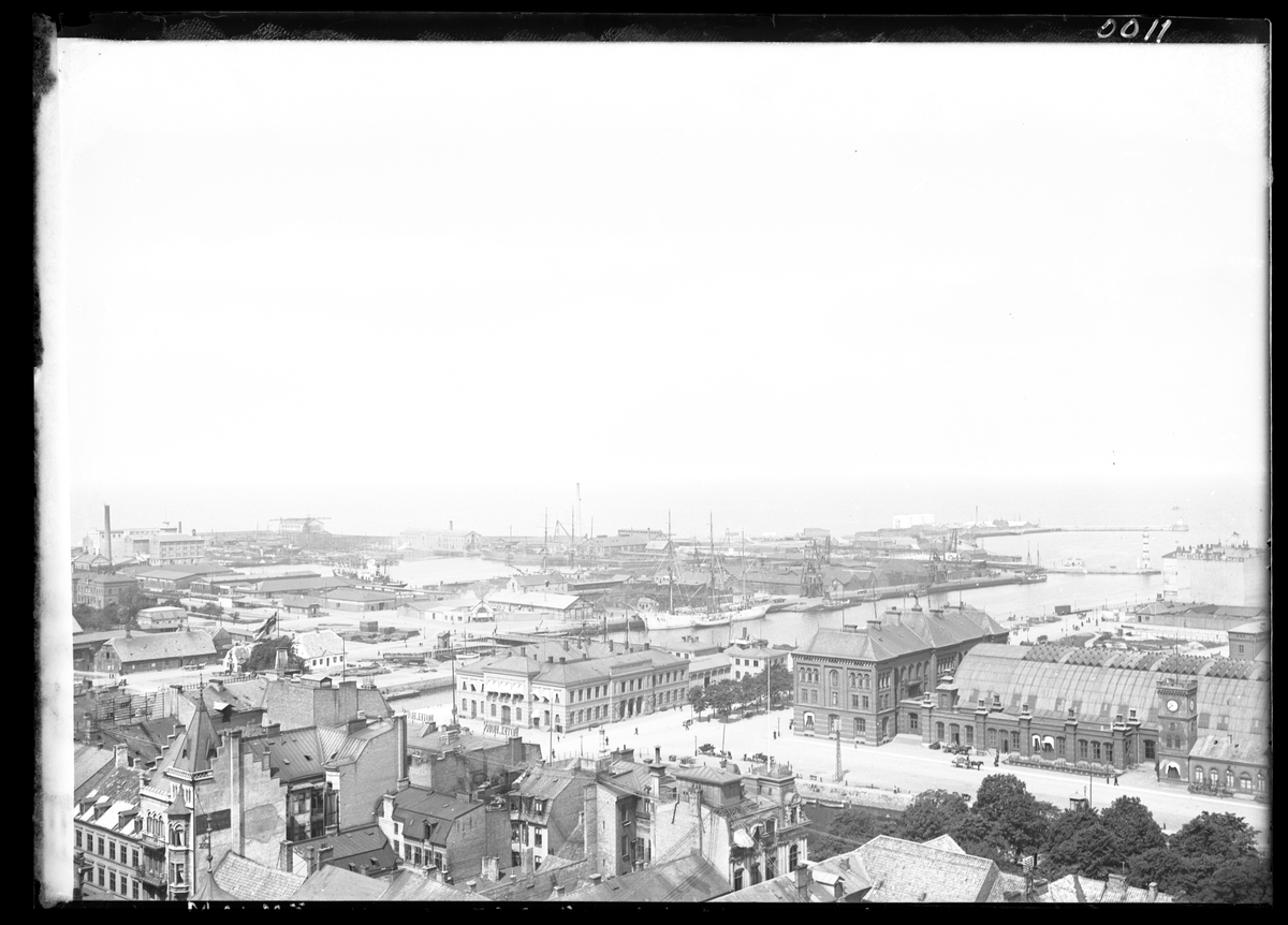 På kuvertet står följande information sammanställd vid museets första genomgång av materialet: Malmö. Hamn ER. ST Petri Kyrkotorn.