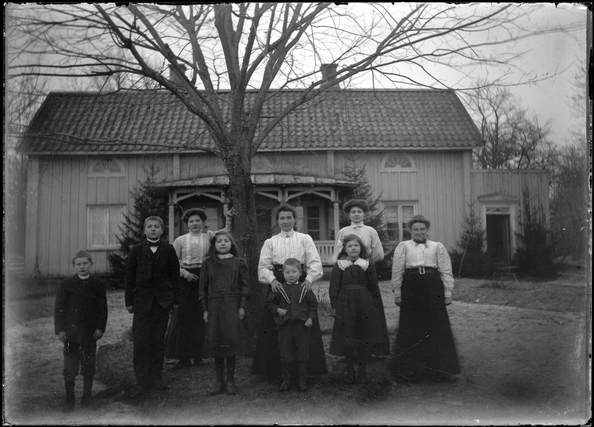 Familj framför bostadshus