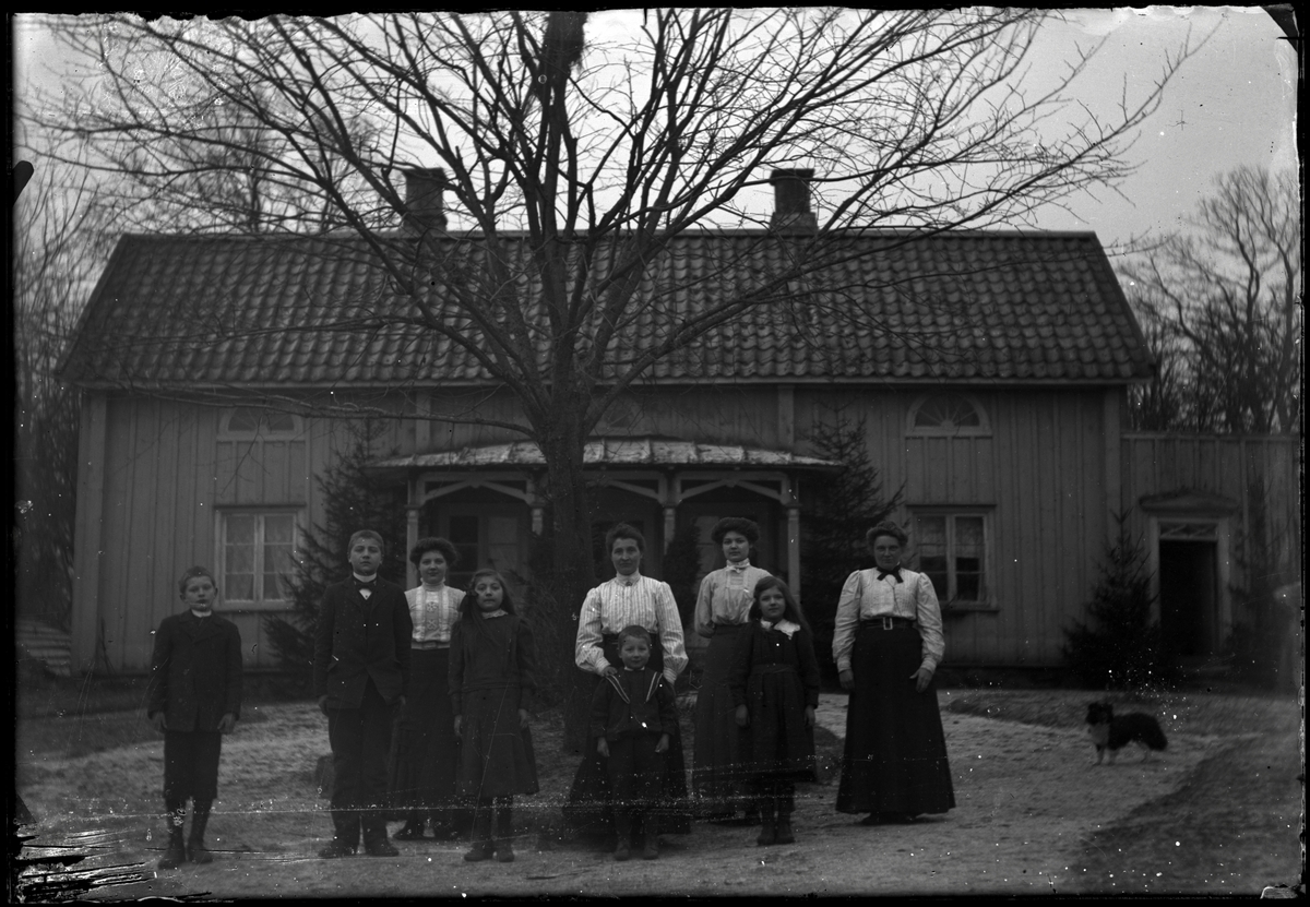 Familj framför bostadshus