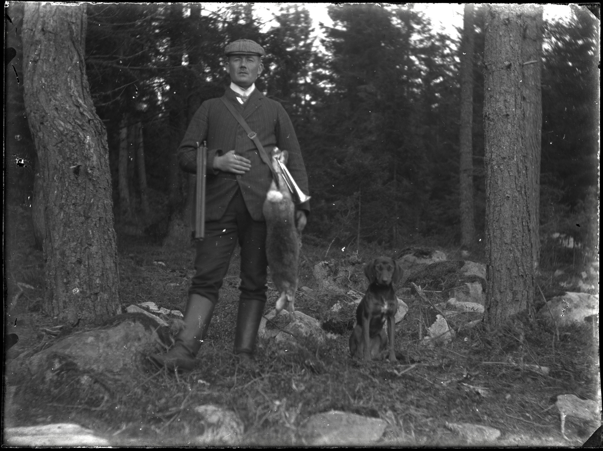 Jägare med skjuten hare