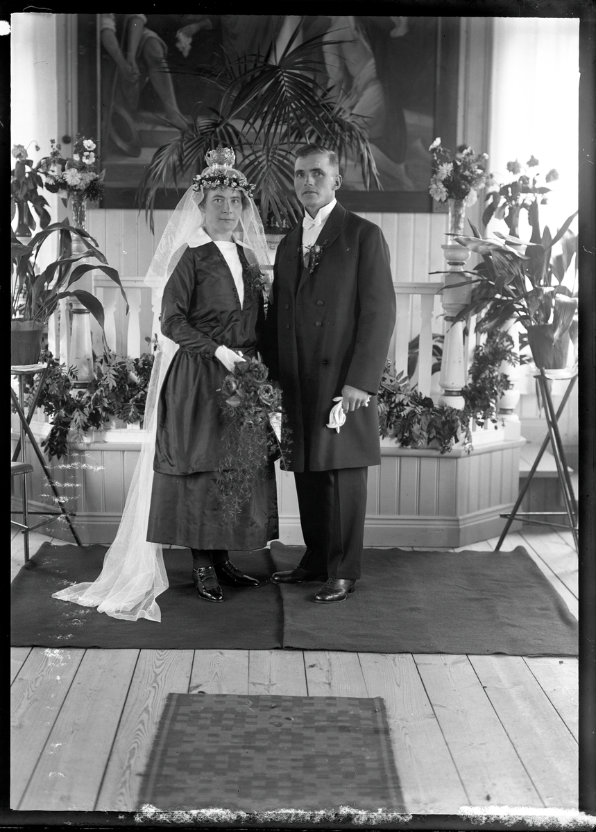Titel: Grupporträtt, Brudpar, Allan Vallin, Berg, Hallstahammar. Ur Gustaf Åhmans samling.