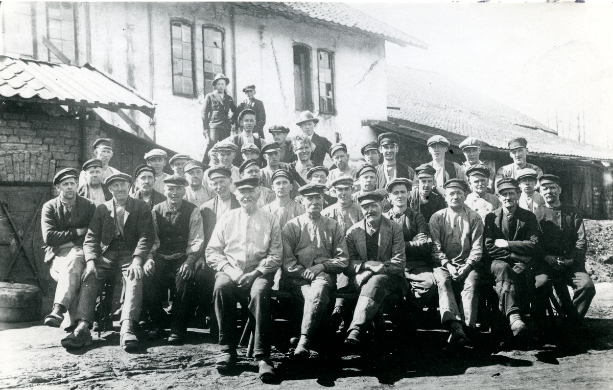 Grupporträtt av smeder vid Karmansbo smedja, 1927.