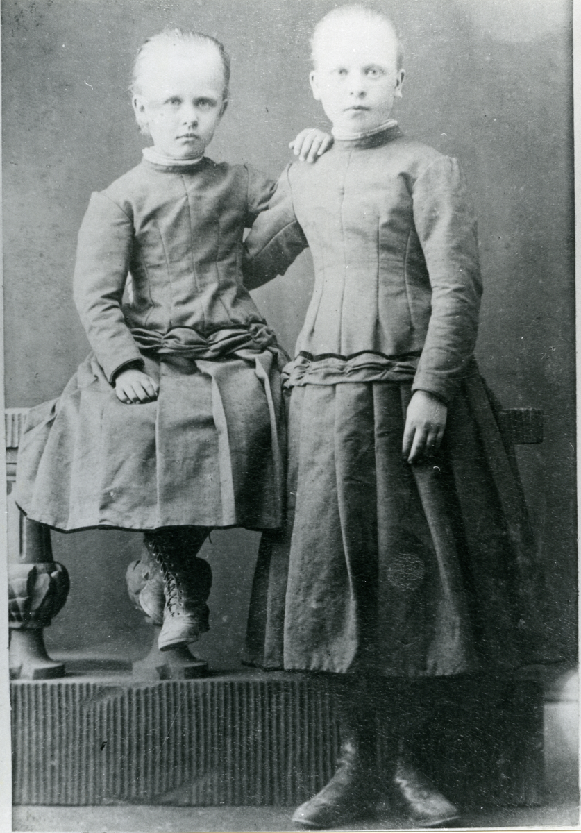 Maria och Laura Hedberg hos fotografen, c:a 1886.