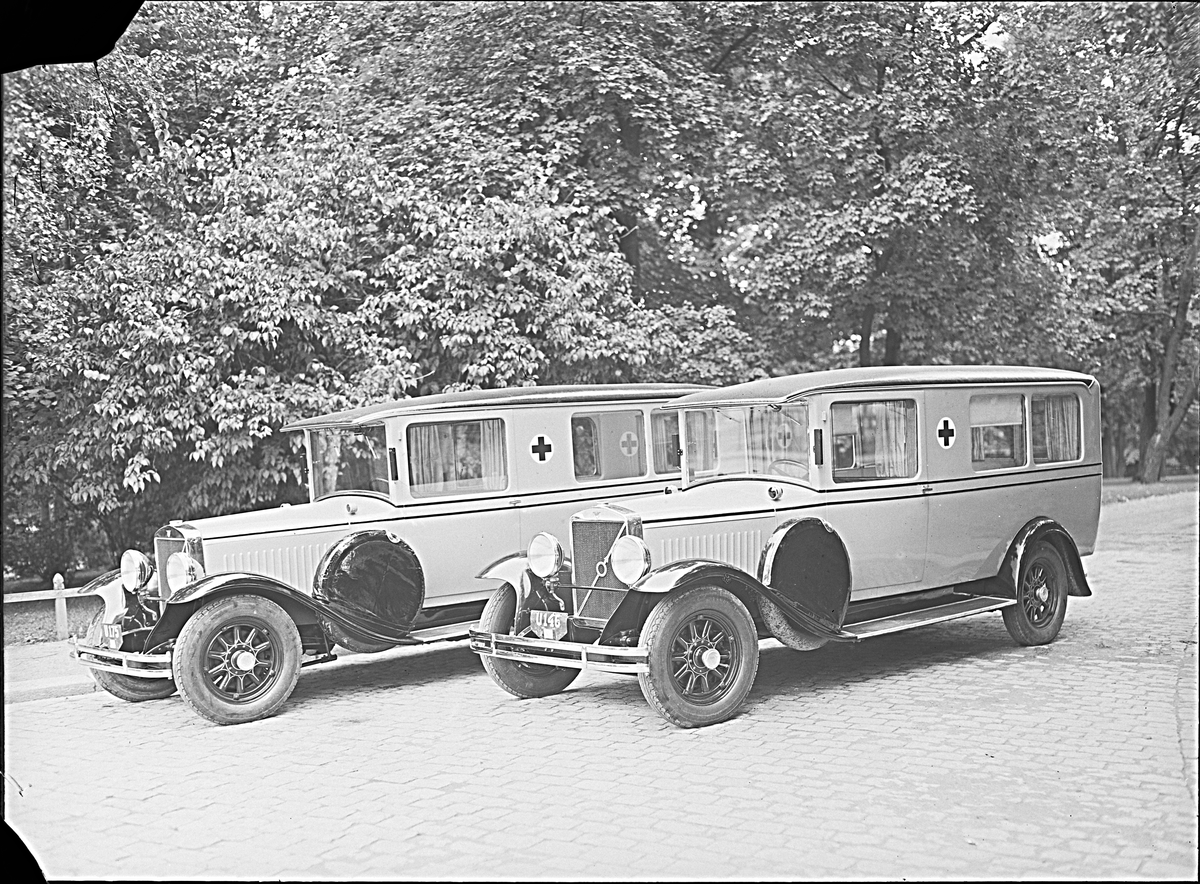 Två nya ambulanser parkerade på Slottsgatan i Västerås.