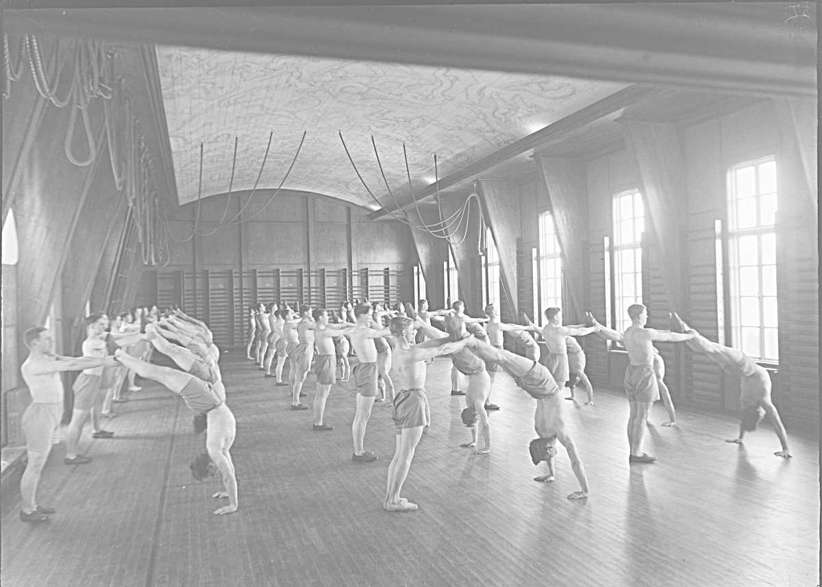 Titel: Gymnastikövningar i Tärna Folkhögskola.