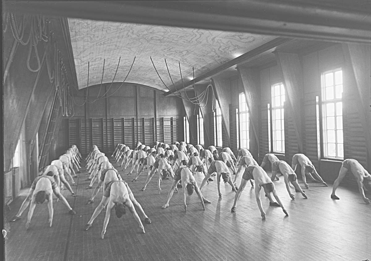 Titel: Gymnastikövningar i Tärna Folkhögskola.