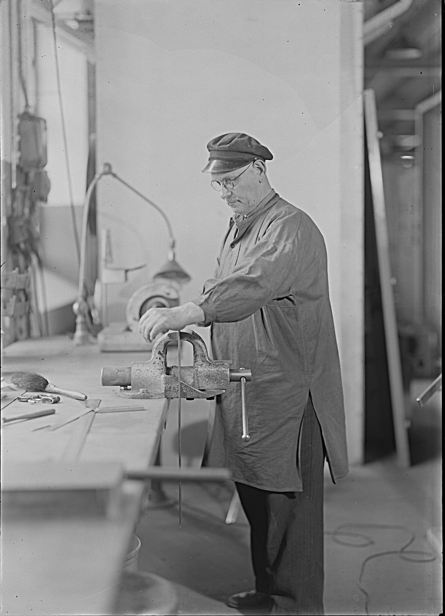 ASEA i Västerås. En arbetare vid skruvstäd.
