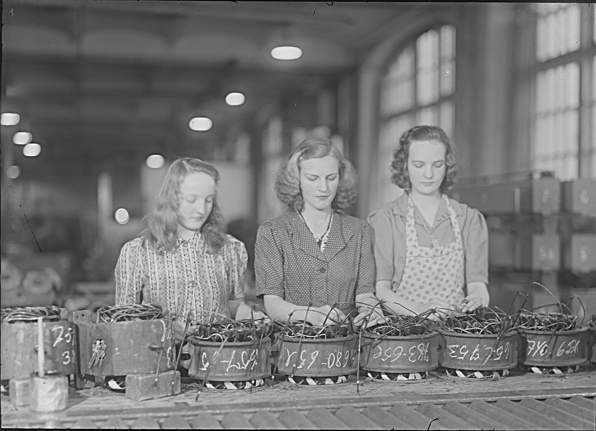Titel: ASEA i Västerås. Tre kvinnliga lindare.